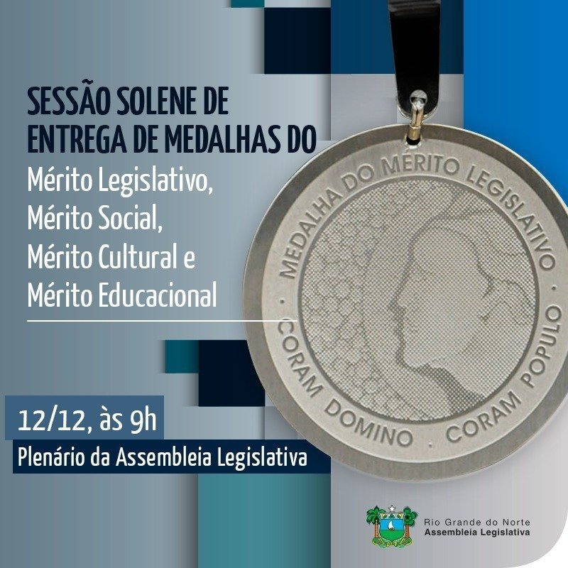 A Assembleia Legislativa do Rio Grande do Norte realiza, nesta terça-feira, dia 12 de dezembro, às 9h, a solenidade de entrega das medalhas do Mérito Legislativo, Social e Cultural, em reconhecimento aos potiguares que contribuíram para o desenvolvimento do Estado no ano de 2017. A novidade deste ano é a instituição de mais uma honraria denominada Medalha do Mérito Educacional “Noilde Ramalho”, destinada aos profissionais da área. No total, 16 personalidades serão agraciadas com a honraria.