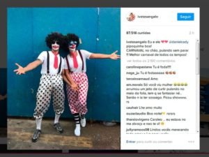 As fotos compartilhadas por Ivete mostram ainda como era a fantasia usada por ela. A roupa é formada por uma calça branca com bolas vermelhas e suspensórios, uma blusa branca, uma gravata vermelha e um nariz de palhaço. Veveta usou bastante maquiagem, uma peruca e um óculos para dificultar a identificação dos fãs durante a festa. Já Daniel estava com uma calça cinza com estampa de estrelas pretas, camisa branca e gravata vermelha.