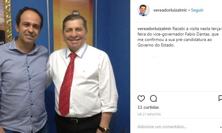 O vice-governador do Rio Grande do Norte, Fabio Dantas, confirmou ao vereador Luiz Almir, sua pré-candidatura ao Governo. O anuncio foi feito hoje pela manhã no gabinete do vereador que teve fotografia postada em rede social com o anuncio.